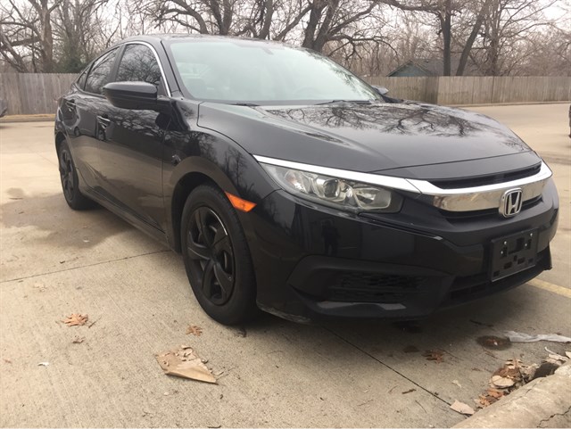 CALL OR TEXT: ROYALTY AUTO GROUP (918) 970-6537 www.royaltyautogroup.com This is a beautiful 2016 Honda Civic LX. It is black with cloth interior that is cream with black racing stripes. It is an extremely sharp performance vehicle with a 6-speed MANUAL transmission. It is in excellent condition and drives great. Well serviced and maintained. Clear car report and clean OK title. It has 82,779 miles. We now offer competitive financing through our local Credit Union partners, with an easy, online application process! Just go to www.royaltyautogroup.com, to apply. PM, Call or Text: (918) 970-6537 Royalty Auto Group 12820 S. Memorial, # 114 Bixby, OK 74008 www.royaltyautogroup.com