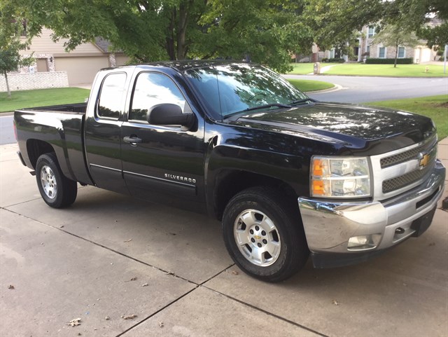 This is a good looking 2012 Chevy Silverado 1500 LT Extended Cab truck. It is a 2WD with tons of options. 5.3L V-8 engine with the towing package. It has a black exterior with tan cloth interior. The truck has a clean Car Report, only 1 owner, no accidents and clear title. The tires are in good shape and it has been well serviced. 104,249 miles.