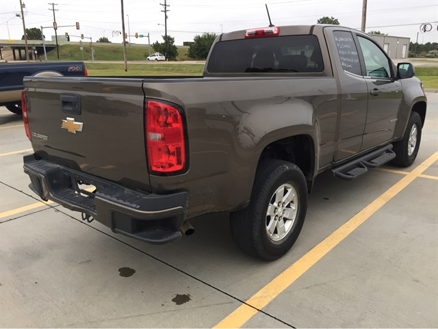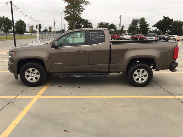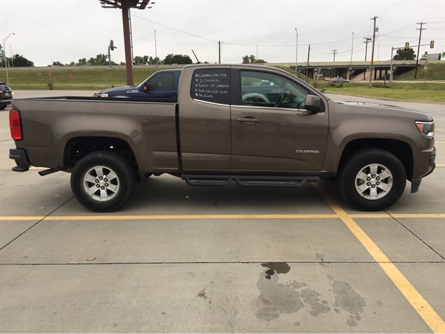 This is a beautiful 2015 Chevy Colorado W/T Extended Cab (4 Door) truck. It is loaded with power doors, windows and mirrors. The truck has a power driver's seat along with a back-up camera. It has a 2.5L 4 cylinder engine, that has been well serviced. It has a brown metallic exterior with black / grey cloth interior. This vehicle has a clear title. The tires are in good shape. It has only 64,865 miles.